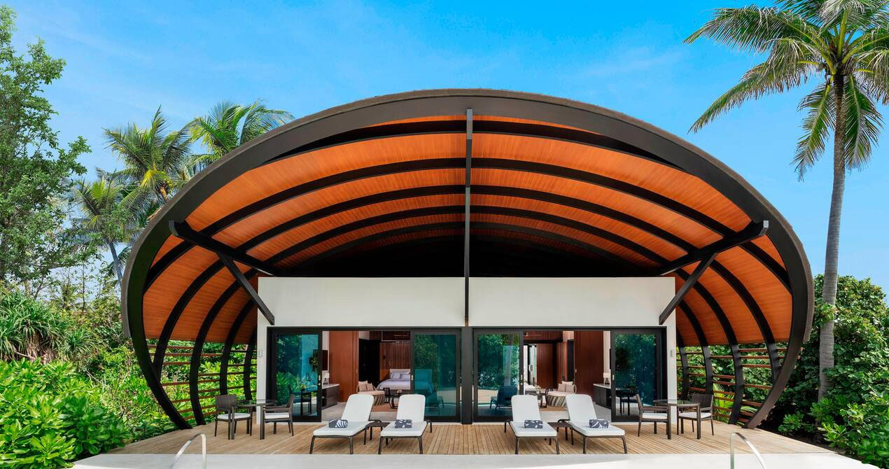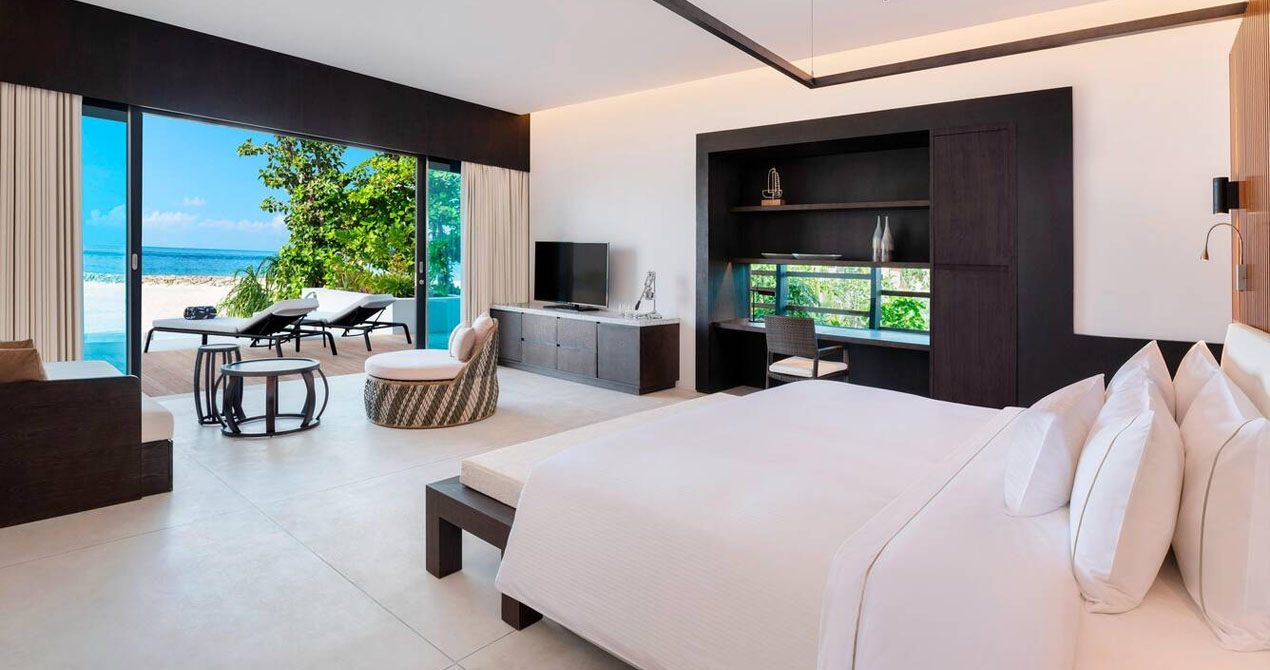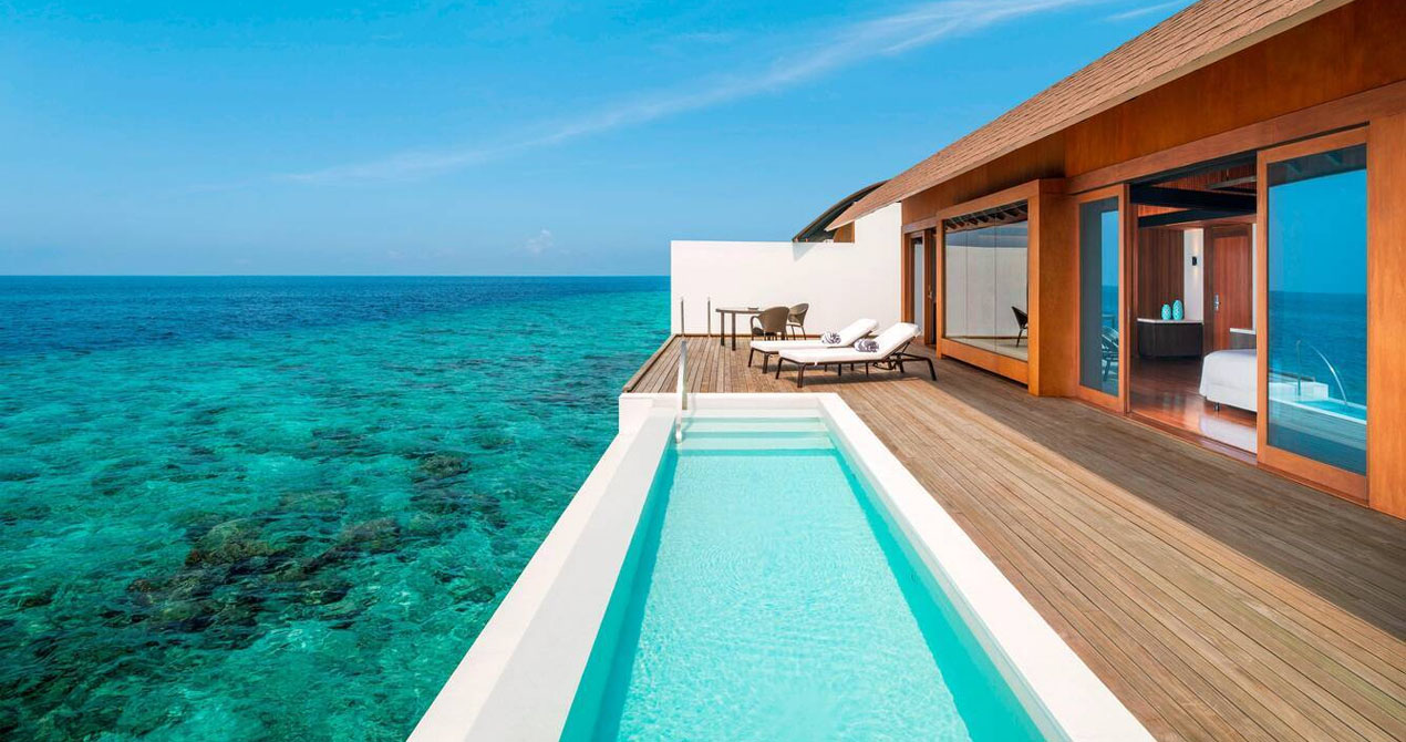 Within a renowned biosphere reserve, this upscale resort is accessible via seaplane from Velana International Airport. It’s 18 km from snorkeling with sharks and manta rays at Hanifaru Bay.